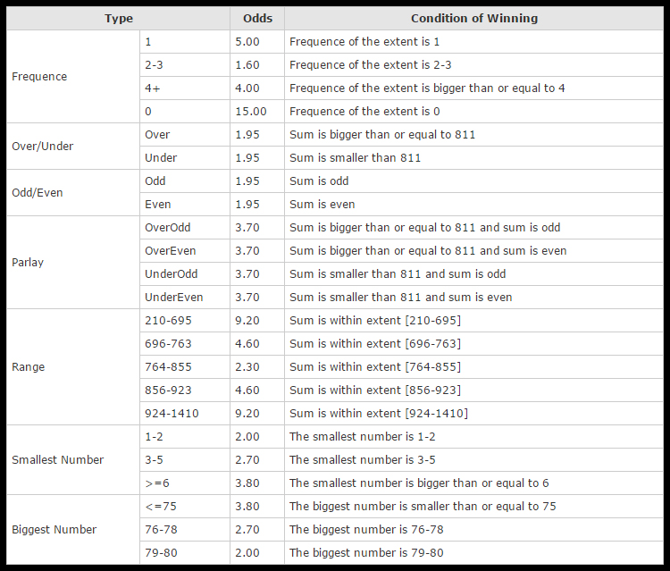 Keno is a bingo game that draws 20 numbers from 80 numbers 1 through 80 at random. Simple choose the amount, game type to bet. If you bet the right game type, you win.
